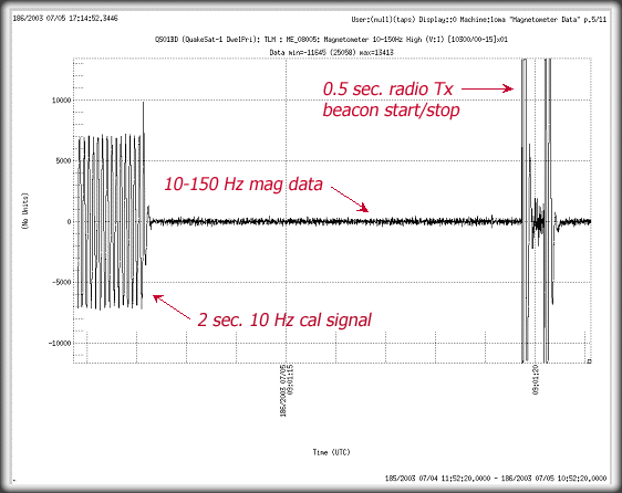 This weekend we achieved a major milestone in on orbit operations by successfully beginning to download both payload magnetometer and housekeeping data (magnetometer data shown below). Overall in first week in orbit, QuakeSat is operating well, and appears to be in good health. ![]()