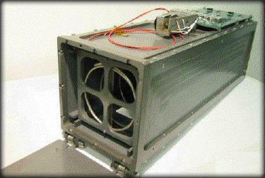 The P-POD (Poly Pico Orbital Deployer) is the standard CubeSat deployment launcher, which gets physically mounted to the spacecraft launch vehicle. Developed by Cal Poly San Luis Obispo, the P-Pod uses a burn wire to release the front spring hinged door upon command from ground control. Once open, a pusher plate, backed by a strong compressed spring will push the QuakeSat clear of the launch vehicle, and into its orbit.